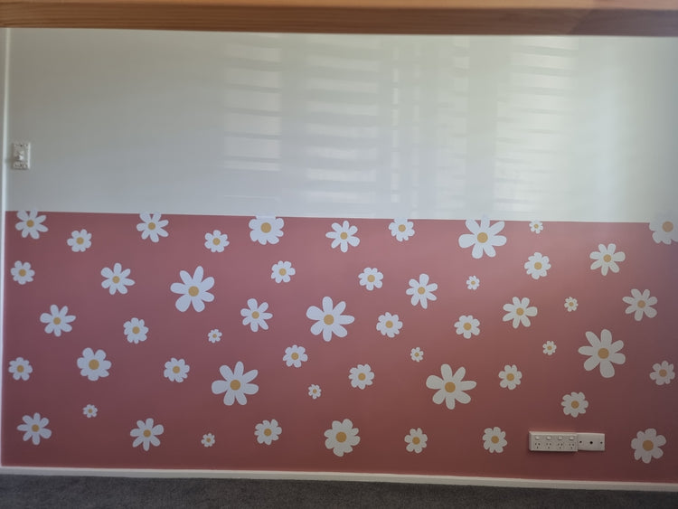 Floral elegance! Transform your space with the charm of our Flower Wall Decals! Perfect for adding a touch of whimsy and colour to any room, these decals feature a delightful array of daisies and flowers in various sizes, creating a stunning wallpaper effect without the cost or hassle. Whether you're decorating a nursery, refreshing a bedroom room, or adding a floral accent to your office, these decals offer an affordable and stylish solution. Easy to apply and reposition, they allow you to customise your floral arrangement to suit your taste and space.