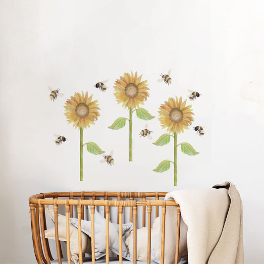 Sunflower Wall Decals | Bees | Fabric Wall Decals