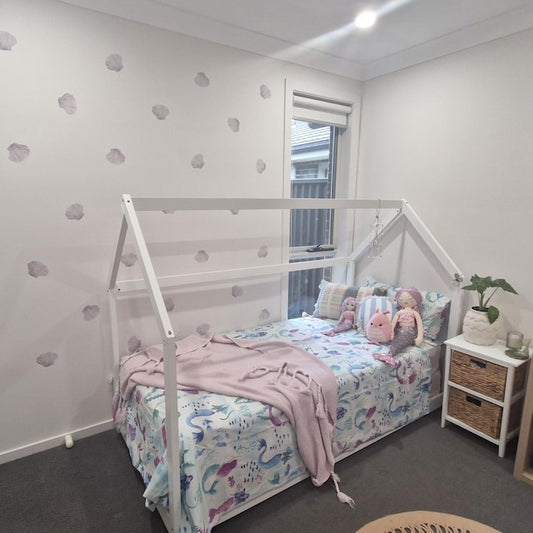 Explore our collection of hand painted Sea Shell Decals. Our decals are removable, re-usable and plastic free! Perfect for rentals and caravan bunk bed styling.