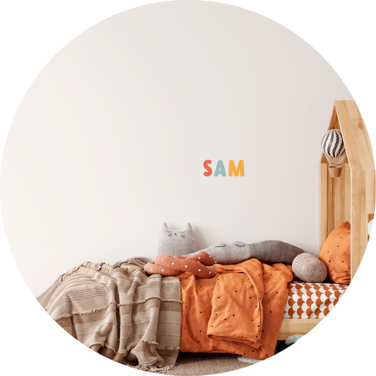Our CUSTOM NAME or Wall QUOTE Decals can be positioned above your bed, bookcase, desk or even in your caravan bunk bed area.