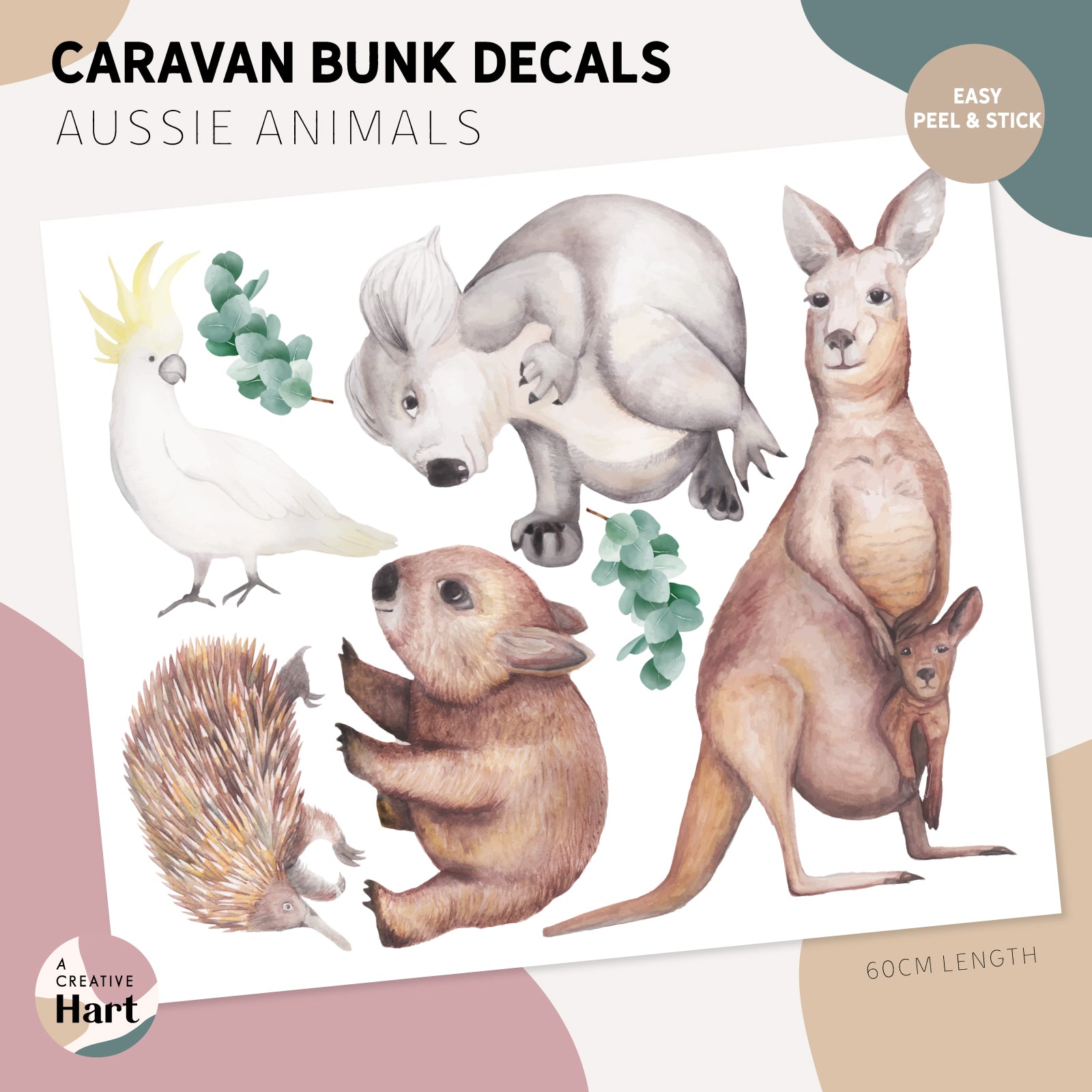 Australian Animal Wall Stickers and Eucalyptus Wall Border - Caravan Bunk Decals for Kids