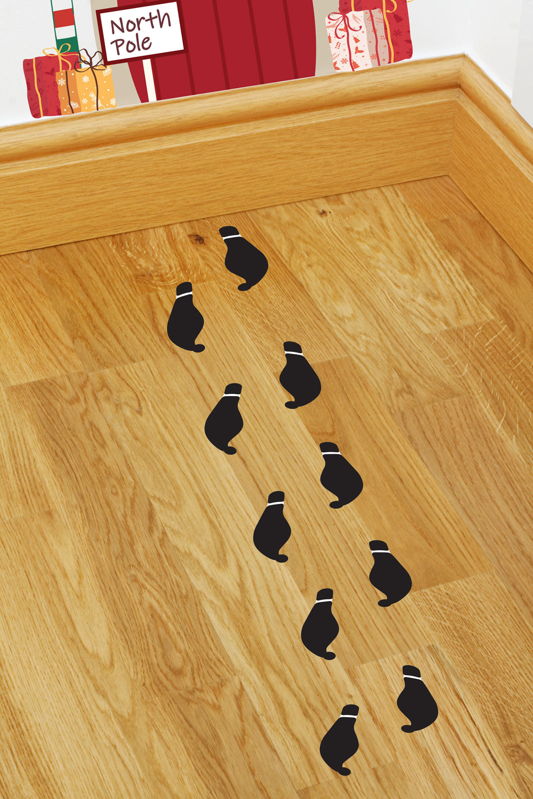 Begin the magic of the Elf visits with our Door to the North Pole and Elf Footprint decals.
