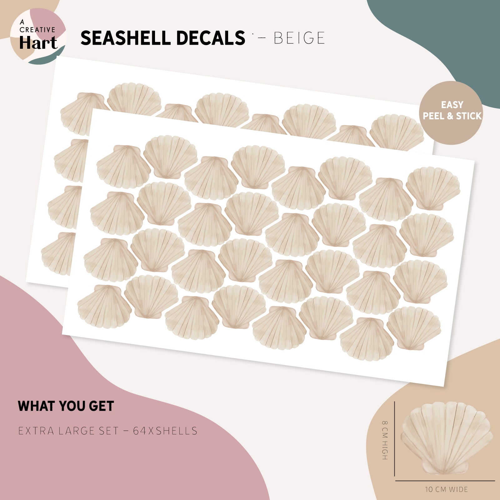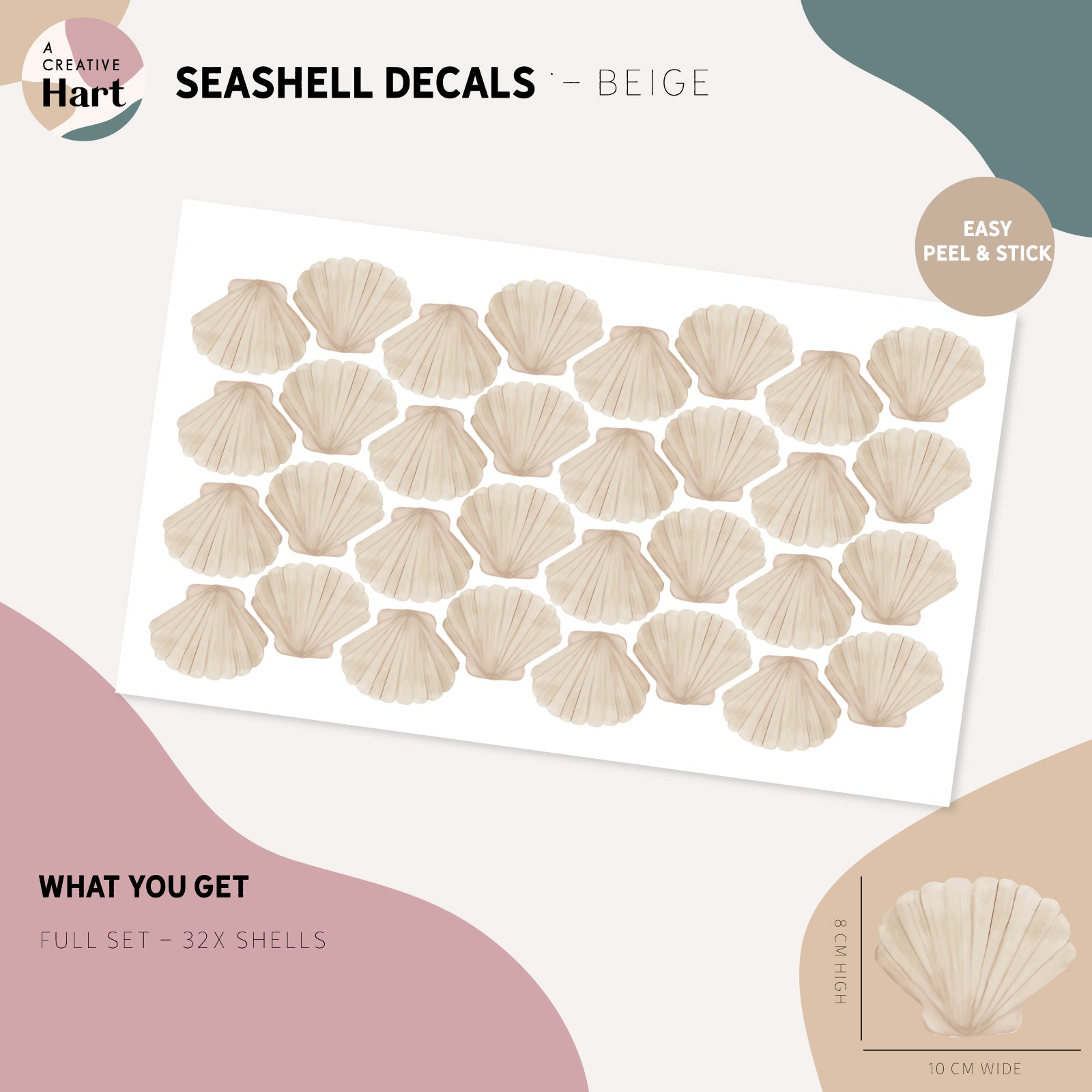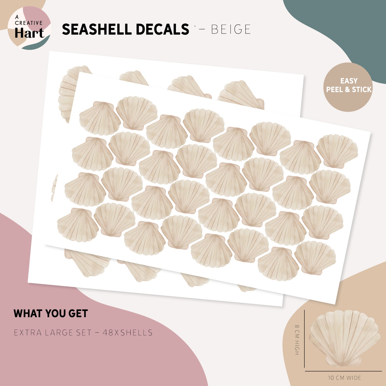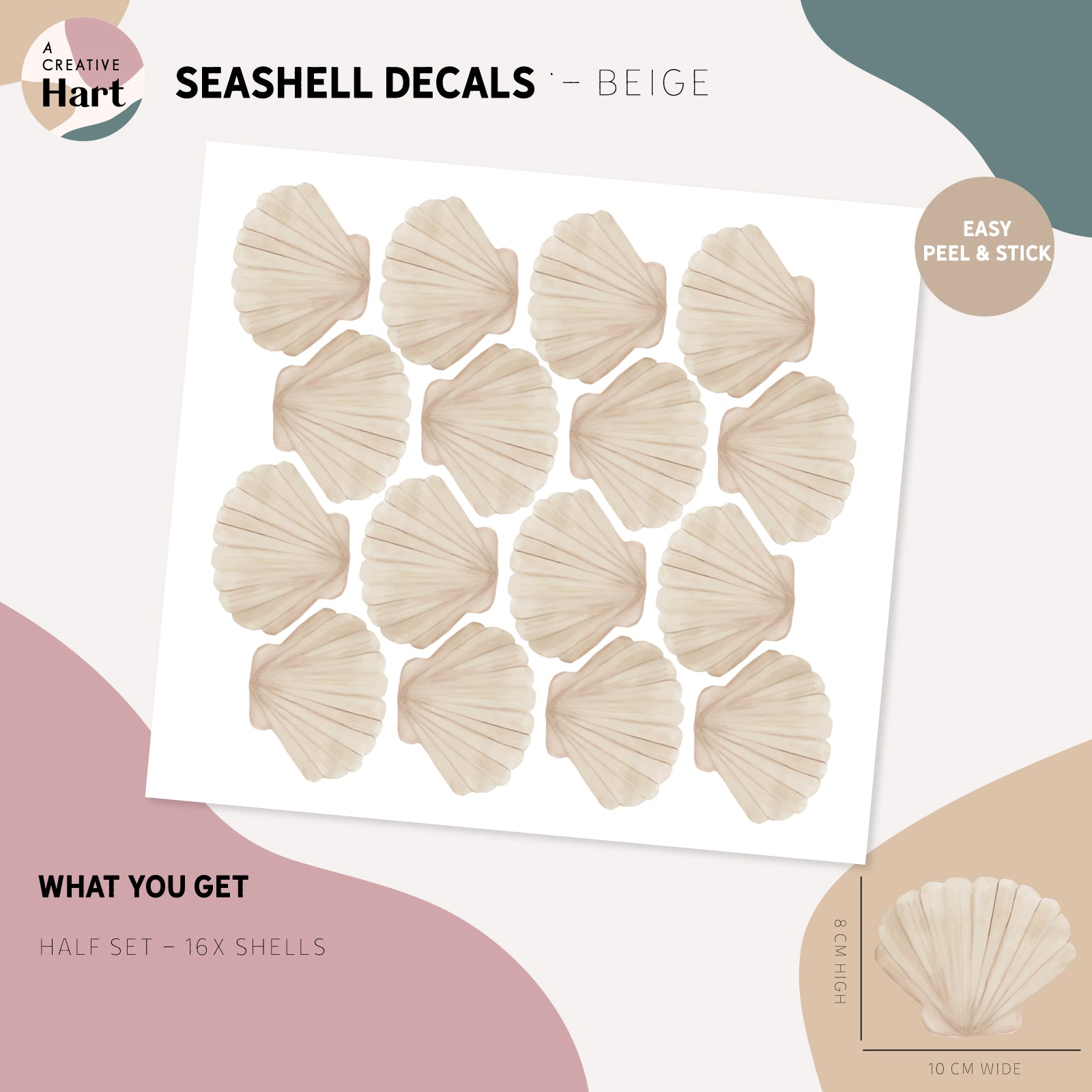 Hand-painted by us and inspired by natural and coastal colours, these shells add colour without the commitment and work of paint - simply peel and stick these ocean treasures.